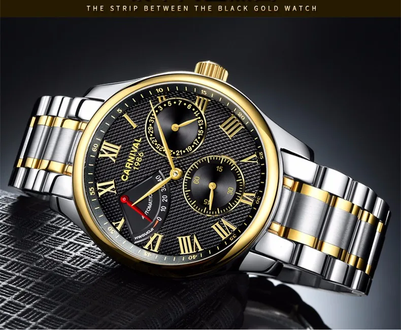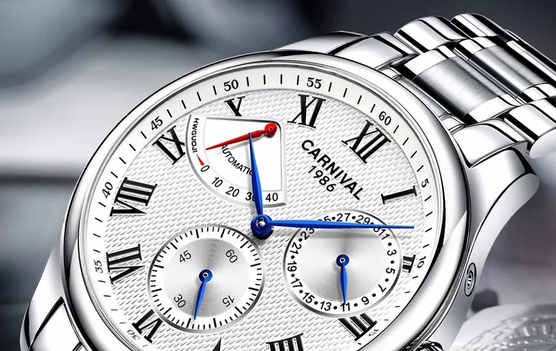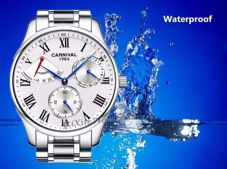Carnival Energy display Switzerland Top Brand mechanical Watches Men military Luxury full steel Waterproof men Watch clock reloj