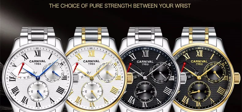 Carnival energy display top quality military (army) fully-automatic self wind mechanical movement men famous luxury brand wristwatch genuine leather strap waterproof diving sports 316L fine full steel watch circles analog fashion casual male relogio masculine reloj hombre relogio masculine montre homme uhren damen orologi donna orologi uomo orologio erkek kol saati erkek kol saatleri smart luxury gifts free shipping