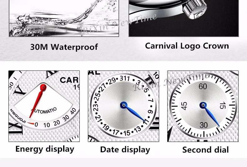 Gift Buy it now , you will get a gift of Black ( Or Brown ) leather strap . Carnival energy display top quality military (army) fully-automatic self wind mechanical movement men famous luxury brand wristwatch genuine leather strap waterproof diving sports 316L fine full steel watch circles analog fashion casual male relogio...