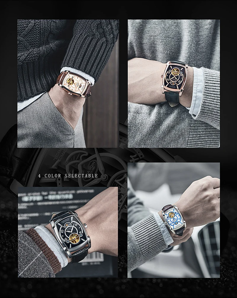 GUANQIN Mechanical Watches Luxury Watch Men Tourbillon Automatic Square Skeleton Watch 2018 Male Clock Relogios dropshipping
