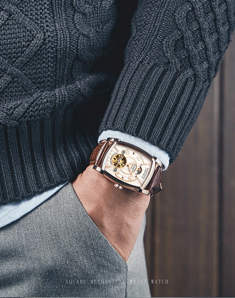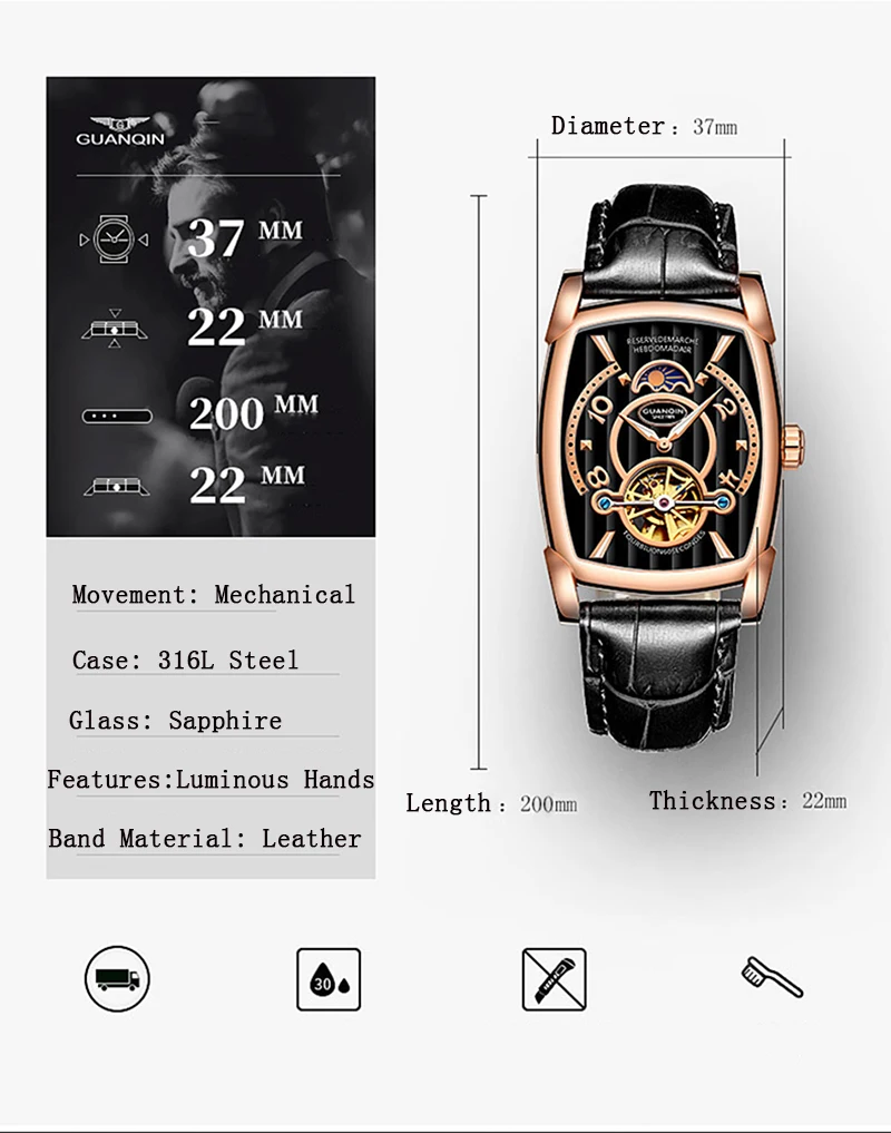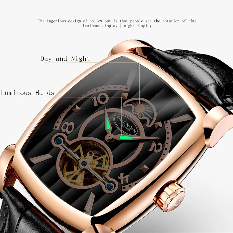 GUANQIN Mechanical Watches Luxury Watch Men Tourbillon Automatic Square Skeleton Watch 2018 Male Clock Relogios dropshipping