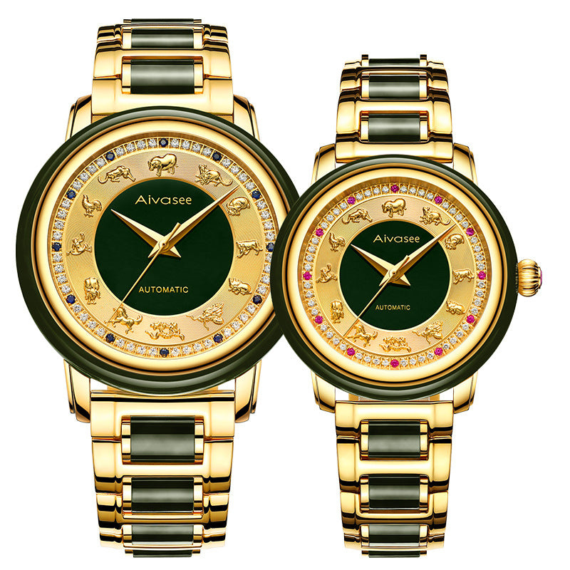 Fashion Zodiac Scale Dial Cyan Jade Men's Watch Sapphire Diamond inlay Clock Couple Automatic Mechanical Wrist Watches Ladies