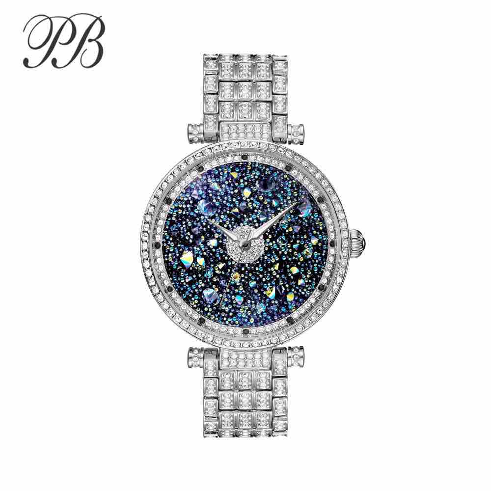 PB Luxury Women Dress Starry Sky Watch Rhinestone Crystal Waterproof Quartz Tend watch Montre Femme Reloj Mujer
