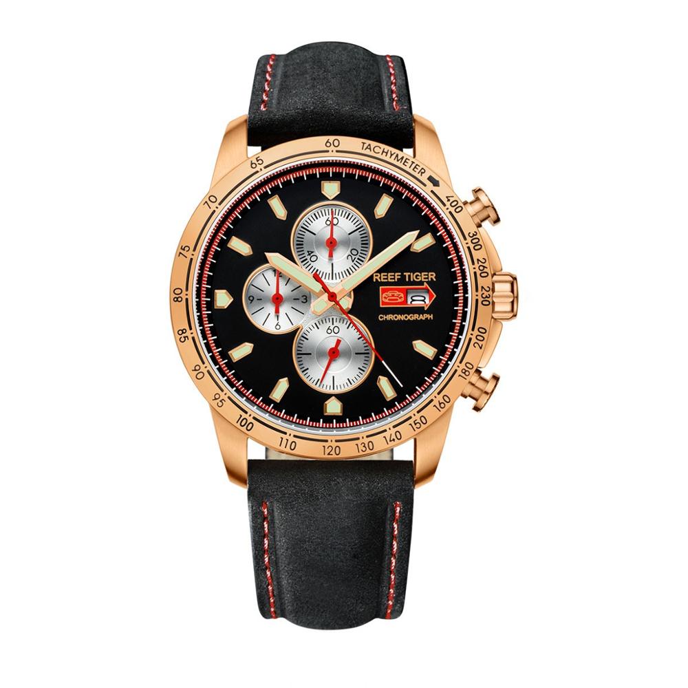 Reef Tiger/RT Sport Watch for Men Chronograph Quartz Watch With And Super Luminous Watch Italian Calfskin Leather Band RGA3029